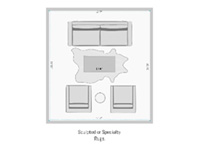 Area rugs are an integral part of decorating and creating a cohesive look in the living room; however, it’s often a random selection. The number one biggest mistake made with area rugs is it’s too small for the room and furniture layout! The size of a rug impacts the overall feel and appearance of the room. When the rug is too small for the room it looks uninviting; too large, it makes the room feel much smaller than it is. The rug’s right size will bring balance, scale, and a finishing touch to the room’s appearance.